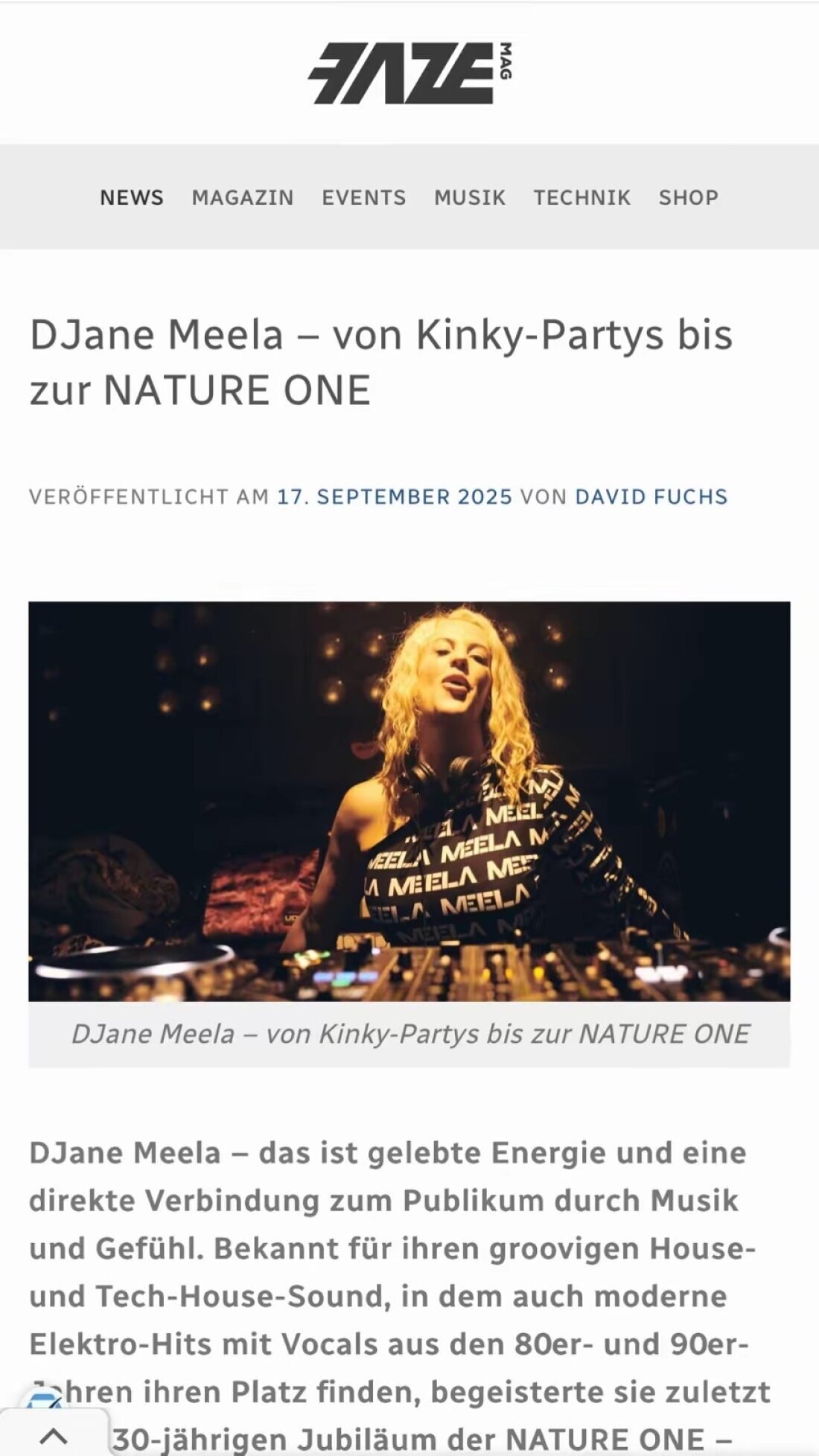 Hier geht es zum kompletten Interview über Djane Meela im FazeMag.